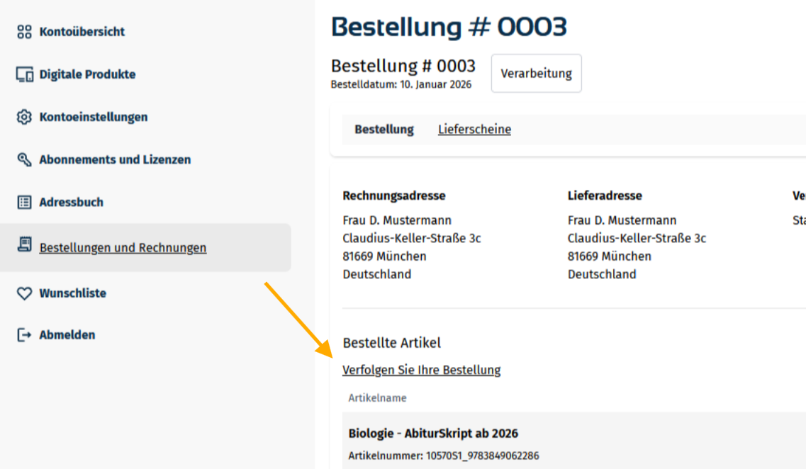 Hinweis: Wenn der Link zur Sendungsverfolgung noch nicht angezeigt wird, wurde Ihre Bestellung noch nicht versendet.