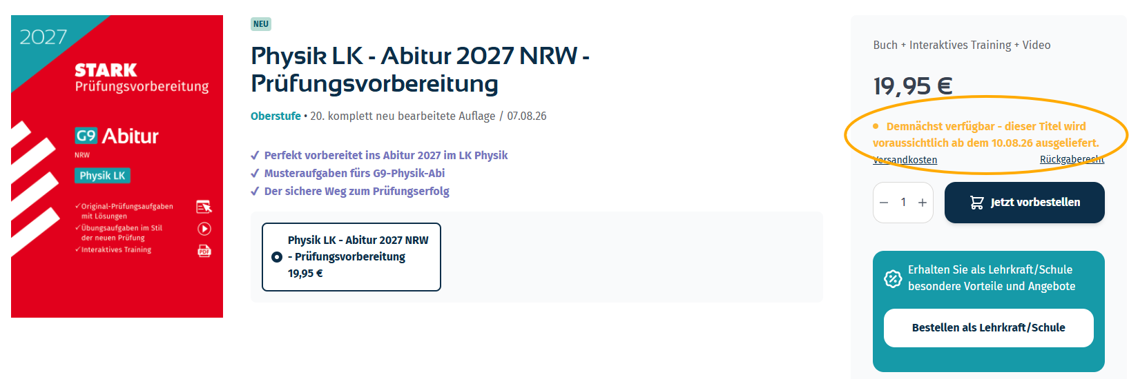 Im rechten Seitenbereich, gelb hinterlegt, sehen Sie die Angaben zur Lieferbarkeit.