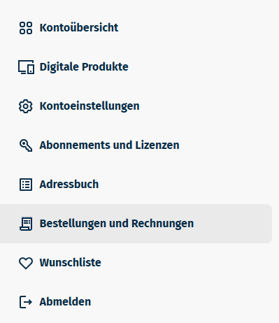 Außerdem finden Sie sie in Ihrem Kundenkonto unter "Bestellungen und Rechnungen" einsehen.