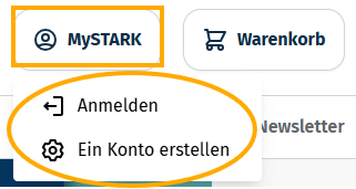 Bitte gehen Sie auf www.stark-verlag.de und registrieren Sie sich bzw. loggen Sie sich in Ihrem Kundenkonto ein. Siehe Screenshots:
