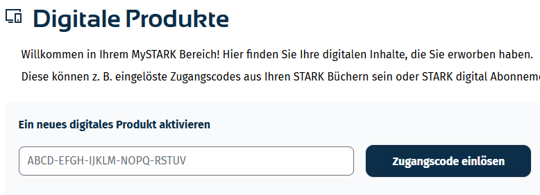 Hinweis: Wenn Sie die Ausgabe 2025 unserer roten Prüfungsbände besitzen und mit einem noch gültigen Code nicht auf Ihre Inhalte auf MySTARK zugreifen können, wenden Sie sich bitte an unseren technischen Support