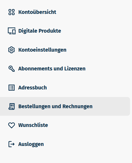 Nach dem Einloggen in Ihr Kundenkonto finden Sie Ihre Rechnung im Bereich "Bestellungen und Rechnungen".